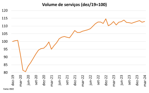 Bottom line: A pesquisa mensal de serviços expandiu +0,4% em março, acima do esperado pelo mercado. A bateria de dados de março sugere uma retomada do crescimento no 1º trimestre do ano, mas as questões se colocam, de fato, a partir de maio, com os efeitos da tragédia climática no Rio Grande do Sul.