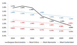 Gráfico 1: Simulação para as despesas discricionárias (% PIB, 2024-2030)