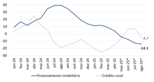 [9] Por meio das Resoluções do CMN nº 5.154 e nº 5.255 e da Resolução do BCB nº 512º, todas de 10 de outubro de 2025, que alteram a regulamentação vigente, o Novo Modelo de Crédito Imobiliário busca ampliar a oferta de recursos para o financiamento imobiliário, especialmente o habitacional, e o acesso da classe média a melhores condições de financiamento habitacional. A nova regulamentação pretende gradualmente reduzir a dependência do modelo de financiamento dos recursos de poupança e FGTS e ampliar a captação de recursos por outros instrumentos, como LCI e LIG. Em prazo mais curto, dispõe sobre a liberação de gradual dos depósitos compulsórios.
