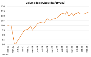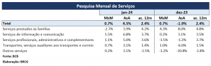 Bottom line: O setor de serviços surpreendeu positivamente em janeiro, confirmando uma rodada de dados em alta frequência que sugere demanda mais forte no início de 2024. Se mantido esse comportamento, pode haver efeito positivo no PIB anual, mas certamente aumentarão os desafios da convergência inflacionária
