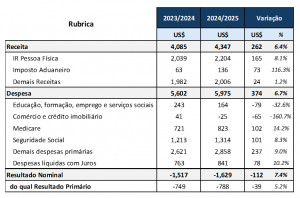 Tabela 1: Aberturas destacadas de Receitas e Despesas (US$bi, 2024/2025 vs. 2023/2024)