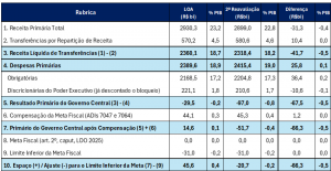 Tabela 1: Resumo de mudanças no Relatório Bimestral de Receitas e Despesas (R$ bi)