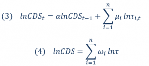 onde  é um vetor de fundamentos globais que afetam a nossa métrica de risco e  é a sua forma reescrita em estado estacionário. O resíduo da equação (4) pode ser interpretado como a componente verdadeiramente local (ou seja, não explicada por fatores externos) do risco-país.
