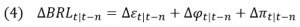 Para permitir uma análise mais fina do que é global e do que é local, é necessário extrair, do risco-Brasil, a parcela de seus movimentos que pode ser explicada por fatores estritamente locais. Para tanto, adaptamos o modelo já utilizado para o BRL, tal como em (1) e (2), e estimamos a seguinte forma funcional para o risco-país:
