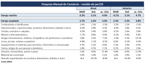 Tabela 1: Vendas no varejo (principais aberturas, MsM, AsA e acumulado em 12 meses)